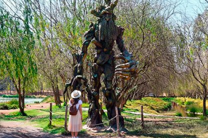 Un escenario surrealista donde los árboles parecen cobrar vida a través de ingeniosas esculturas orgánicas. Un lugar diseñado para la contemplación y la conexión con el espíritu del bosque.